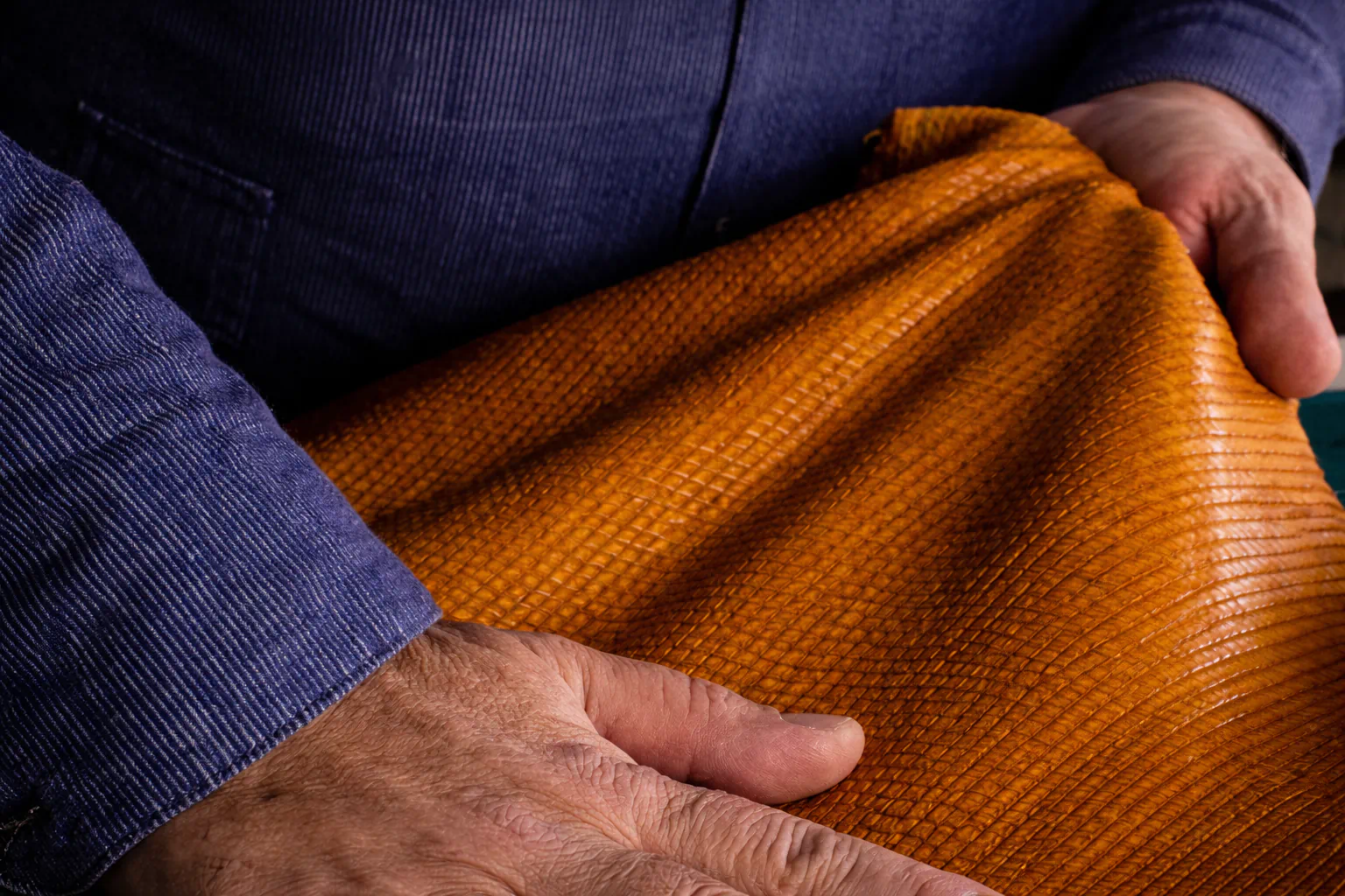 Handcrafted leather bags made in Naples through transparent production cycles.